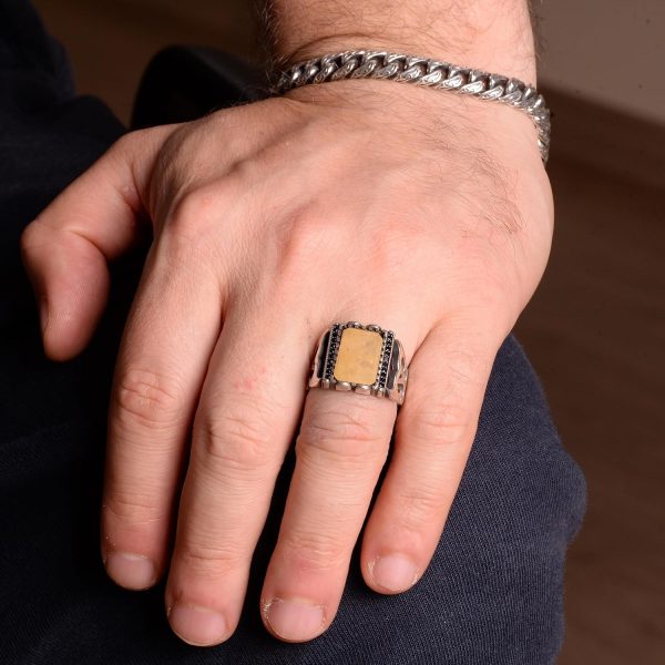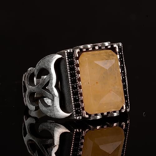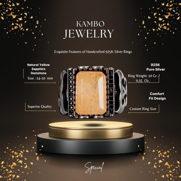 Gerçek Doğal Sarı Safir Taşlı Erkek Yüzük, Minimalist Yüzük, El Yapımı Yüzük, 925 Ayar Gümüş Yüzük