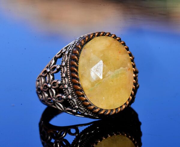 Gerçek Doğal Sarı Safir Taşlı Yüzük, Safir Yüzük, Sterling Gümüş Yüzük
