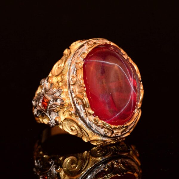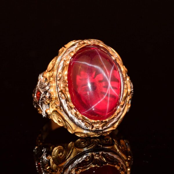 | Taş Tipi | Doğal Yıldız Yakut Doğal Yıldız Yakut, ışık altında yıldız şeklinde parlayan nadir bir optik etkiye sahip, derin kırmızı tonlu değerli bir taştır. Tarih boyunca güç, tutku ve asaletle ilişkilendirilmiş; gösterişli ve anlam yüklü tasarımlarda özel bir yere sahiptir. |