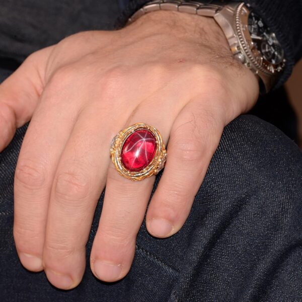 Gerçek Doğal Star Ruby Taş Yüzük, El Yapımı Yüzük, 925 Ayar Gümüş Yüzük