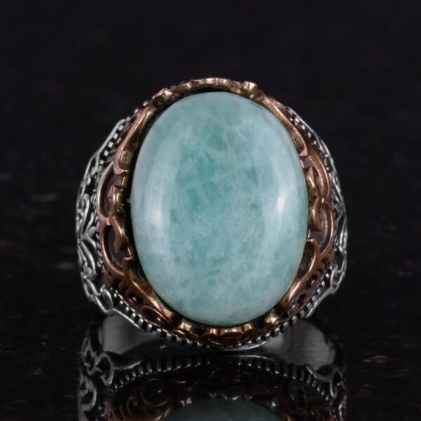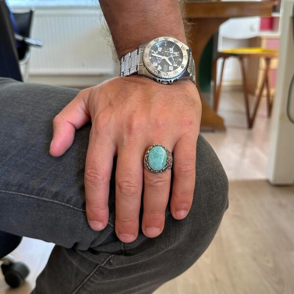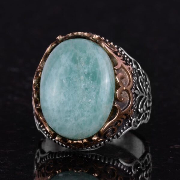 GERÇEK DOĞAL AMAZONİT DEĞERLİ TAŞI EL YAPIMI YÜZÜK – 925 AYAR GÜMÜŞ EL YAPIMI ERKEK YÜZÜĞÜ