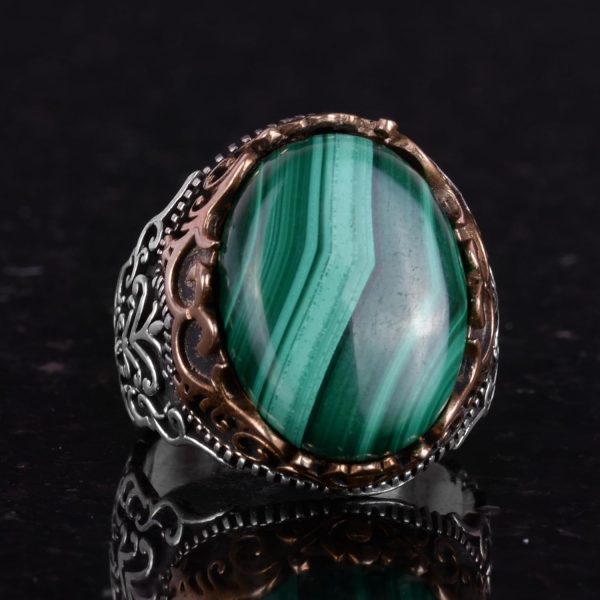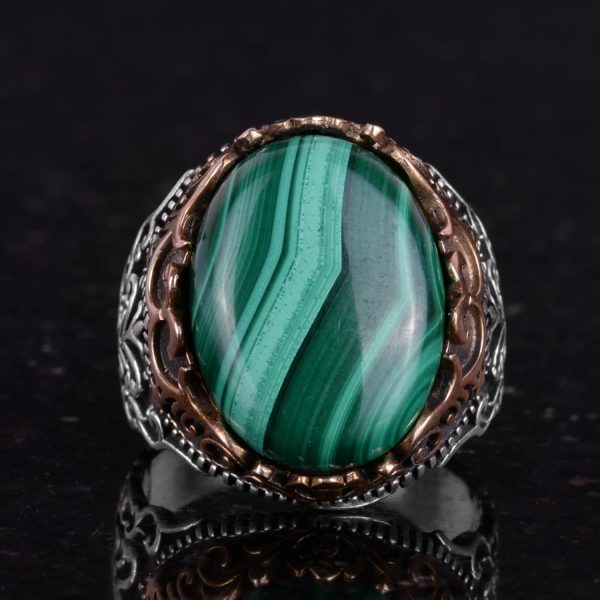 Gerçek Doğal Taş El Yapımı Yüzük – 925 Ayar Gümüş El Yapımı Yüzük – Şık Farklı Yüzük (Malakit)