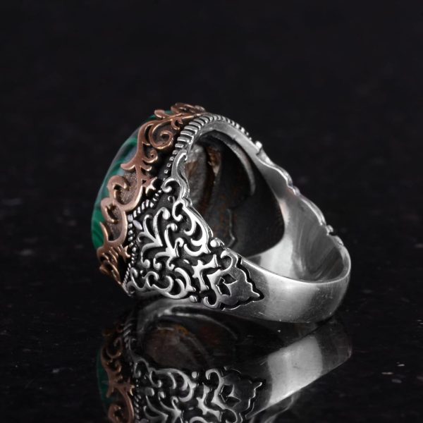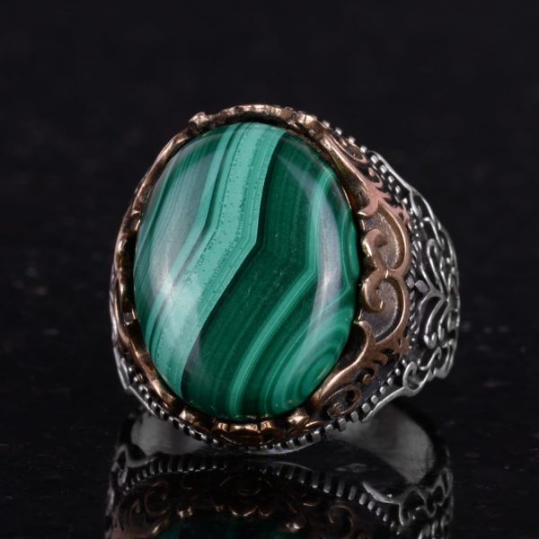 GERÇEK DOĞAL MALAHİT TAŞI EL YAPIMI YÜZÜK – 925 AYAR GÜMÜŞ EL YAPIMI ERKEK YÜZÜĞÜ