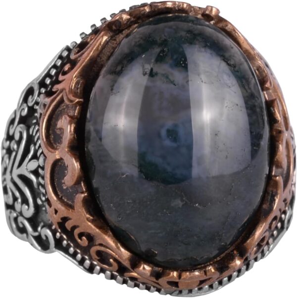Bu eşsiz erkek yüzüğüyle stilinizi yükseltin; içerisinde gerçek bir Moss Agate taşı barındırmaktadır. Moss Agate, büyüme, istikrar ve doğayla derin bir bağlantıyı simgeleyen, yemyeşil manzaraları andıran benzersiz yeşil desenleriyle değerlidir.