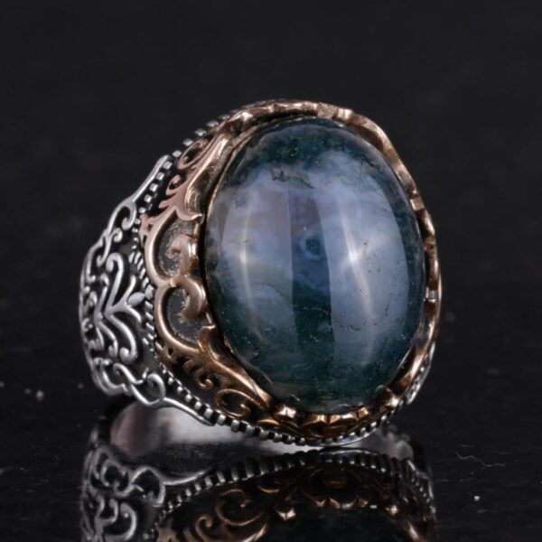 Gerçek Doğal Taş El Yapımı Yüzük – 925 Ayar Gümüş El Yapımı Yüzük – Şık Farklı Yüzük (Moss Akik)