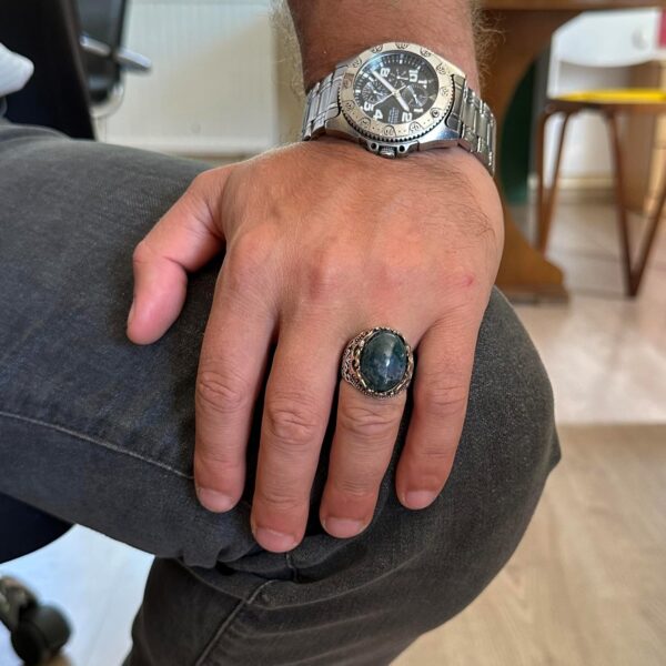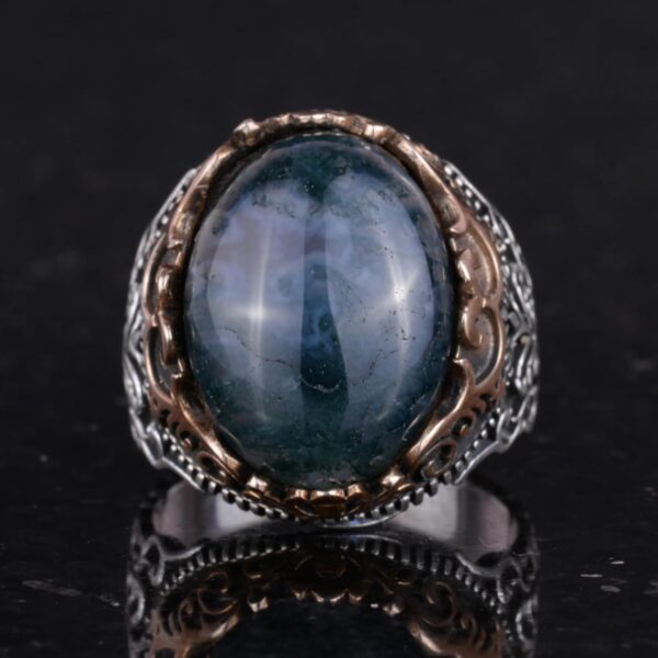 GERÇEK DOĞAL MOS AGATE DEĞERLİ TAŞ EL YAPIMI YÜZÜK – 925 AYAR GÜMÜŞ EL YAPIMI ERKEK YÜZÜĞÜ