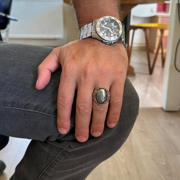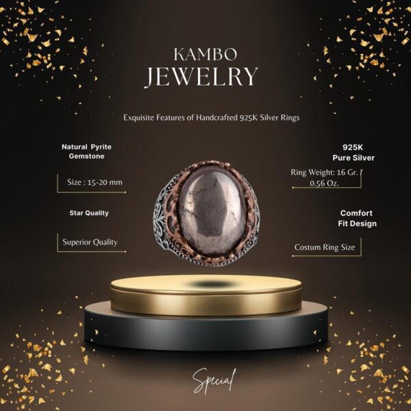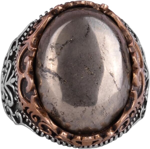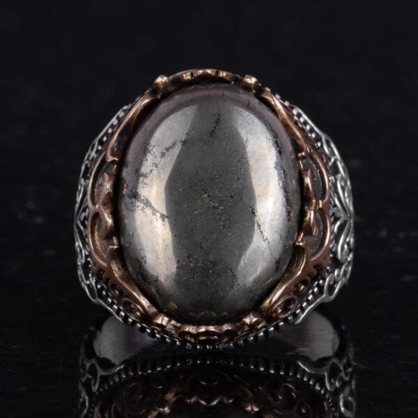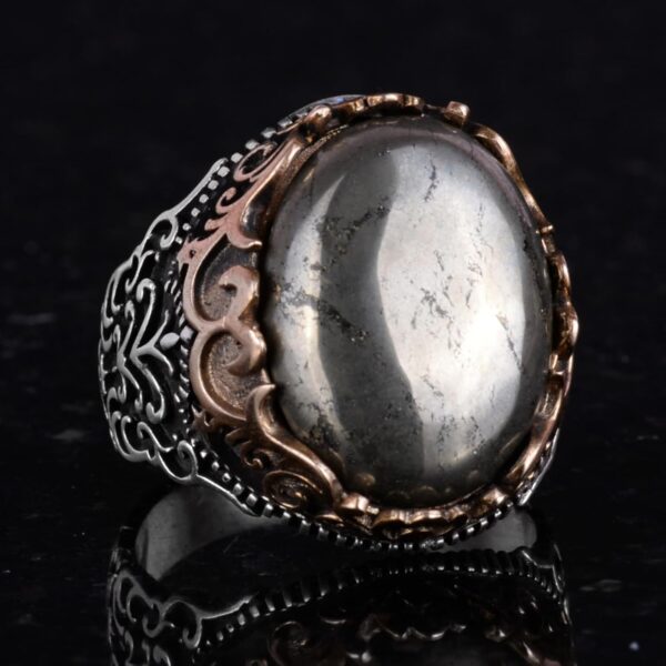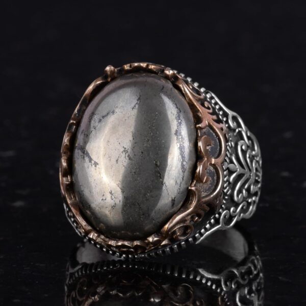 Gerçek Doğal Taş El Yapımı Yüzük – 925 Ayar Gümüş El Yapımı Yüzük – Şık Farklı Yüzük (Pirita)