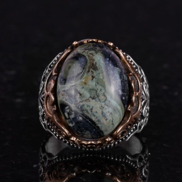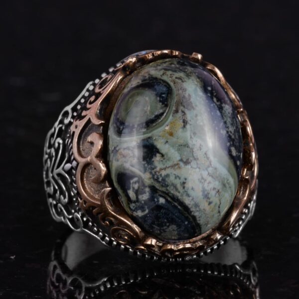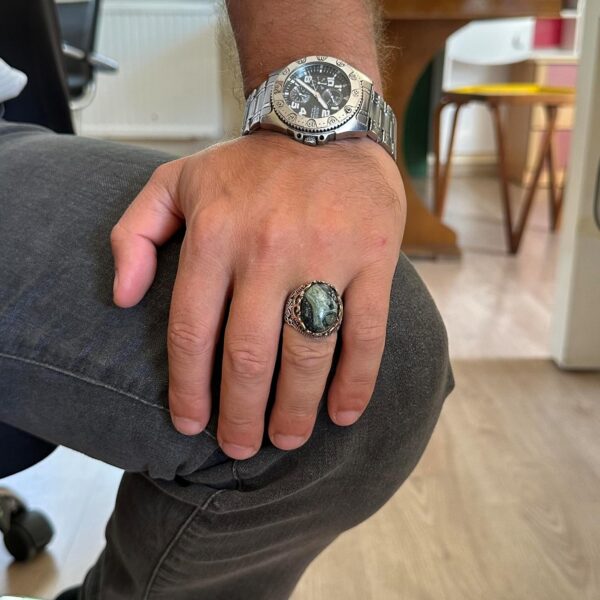 GERÇEK DOĞAL YEŞİL GÖZ TAŞI EL YAPIMI YÜZÜK – 925 AYAR GÜMÜŞ EL YAPIMI ERKEK YÜZÜĞÜ