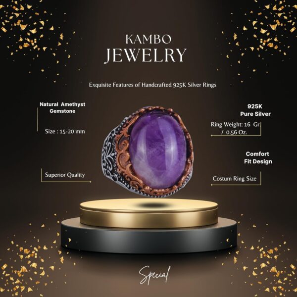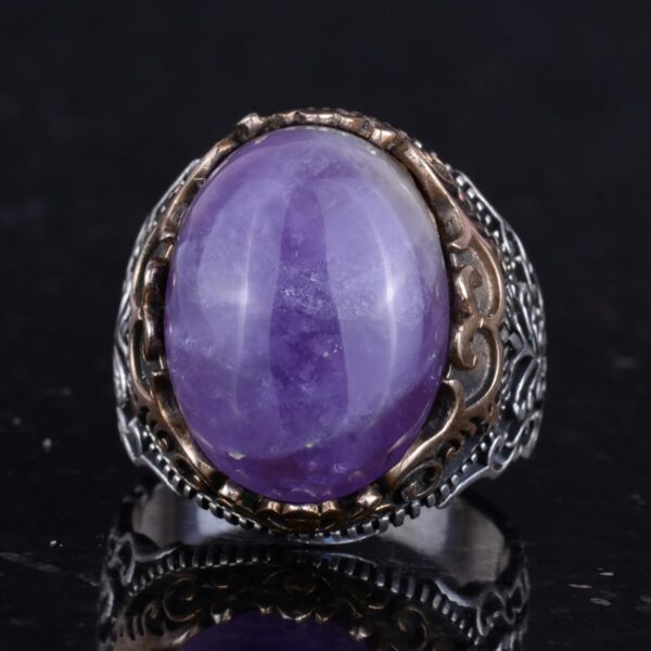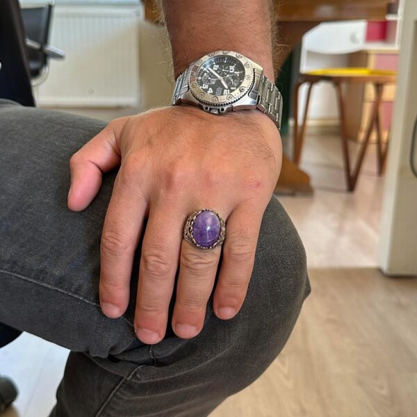 GERÇEK DOĞAL AMETİST TAŞI EL YAPIMI YÜZÜK – 925 AYAR GÜMÜŞ EL YAPIMI ERKEK YÜZÜĞÜ