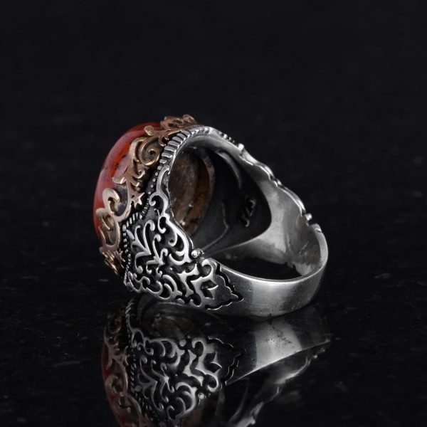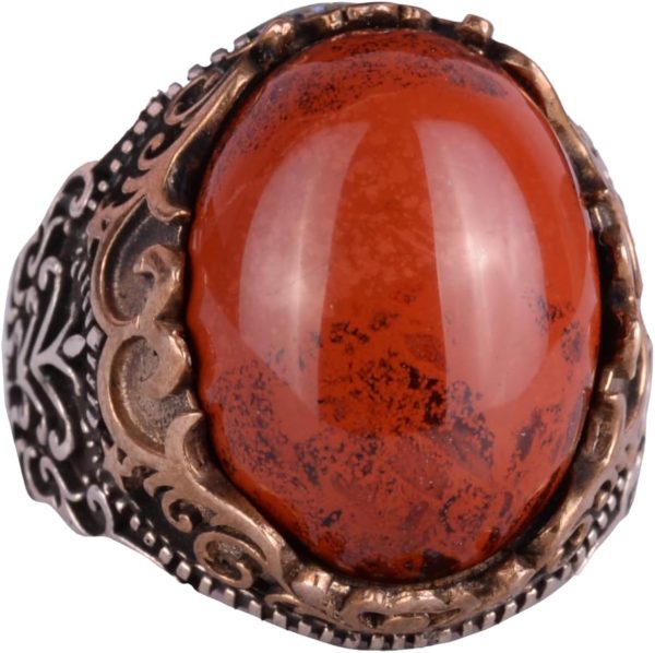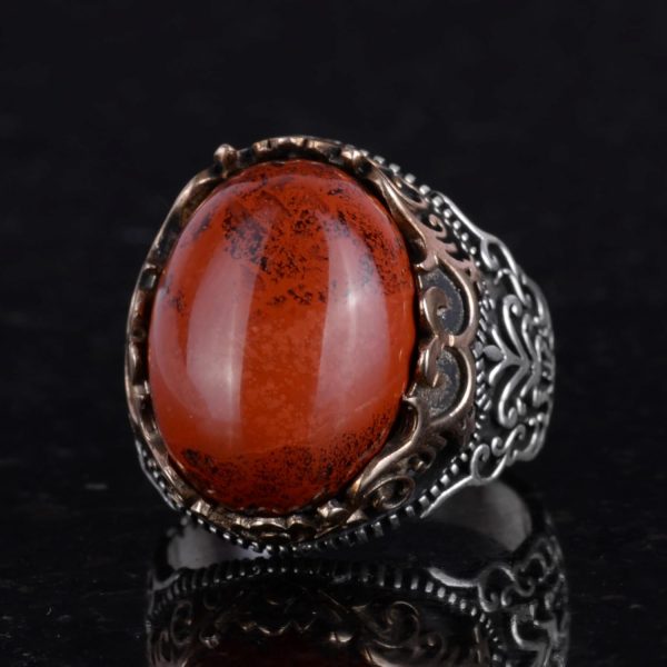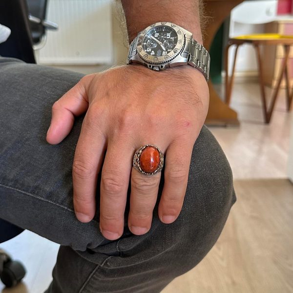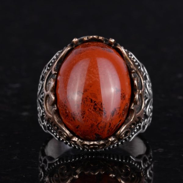 GERÇEK DOĞAL KIRMIZI KAN TAŞI DOĞALTAŞ EL YAPIMI YÜZÜK – 925 AYAR GÜMÜŞ EL YAPIMI ERKEK YÜZÜĞÜ