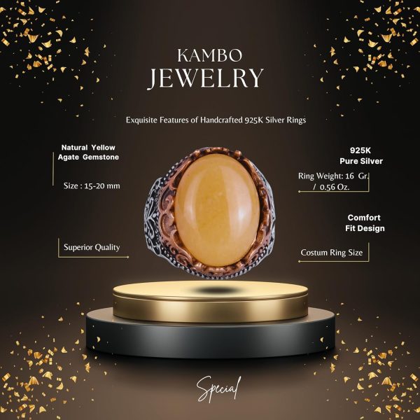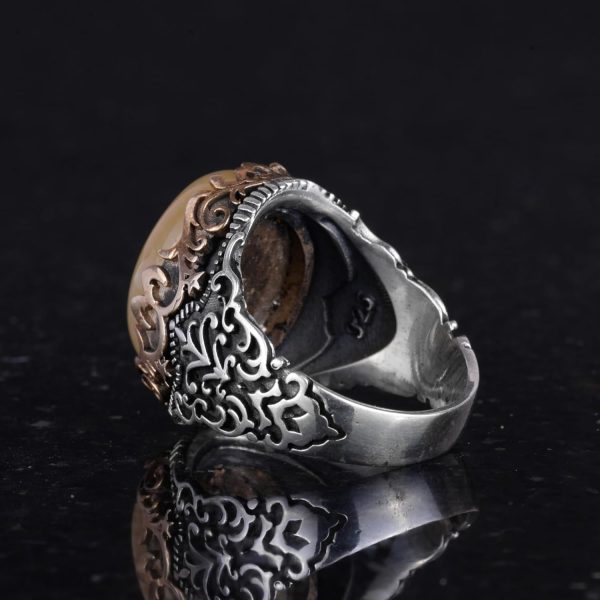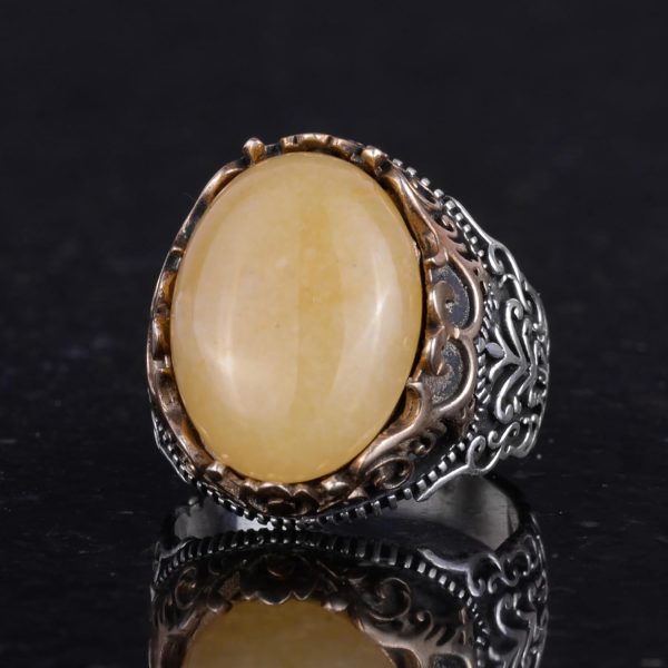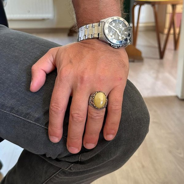 Gerçek Doğal Taş El Yapımı Yüzük – 925 Ayar Gümüş El Yapımı Yüzük – Şık Yüzük (Sarı akik)