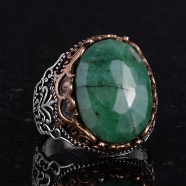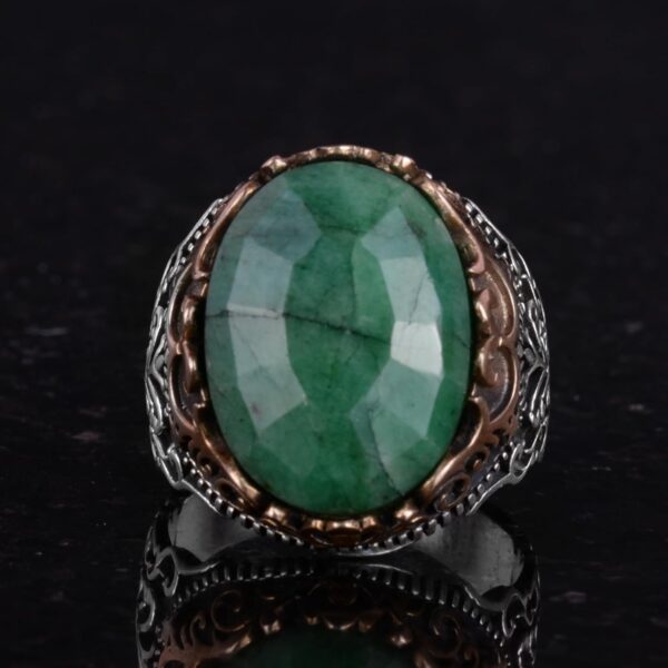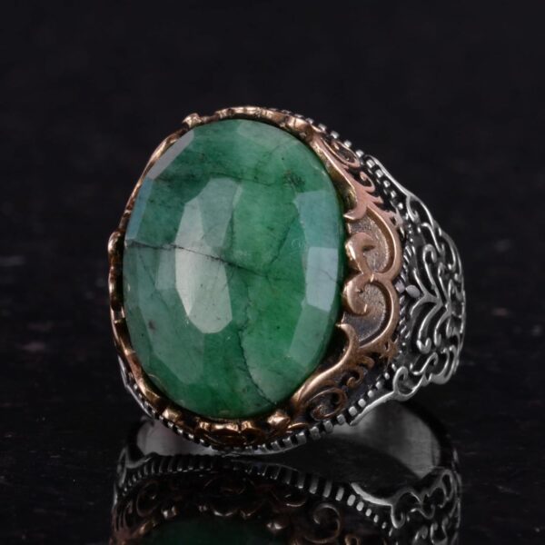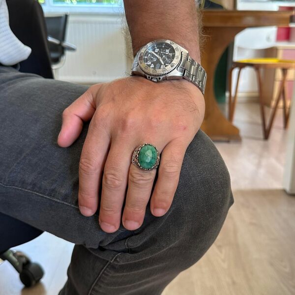 Gerçek Doğal Taş El Yapımı Yüzük – 925 Ayar Gümüş El Yapımı Yüzük – Şık Yüzük (Zümrüt)