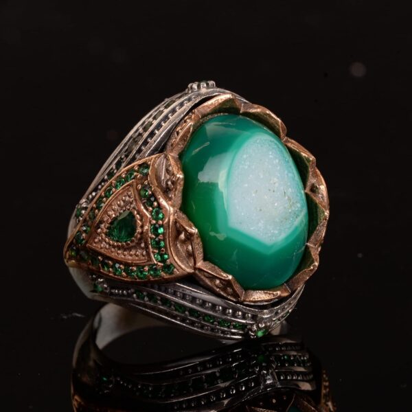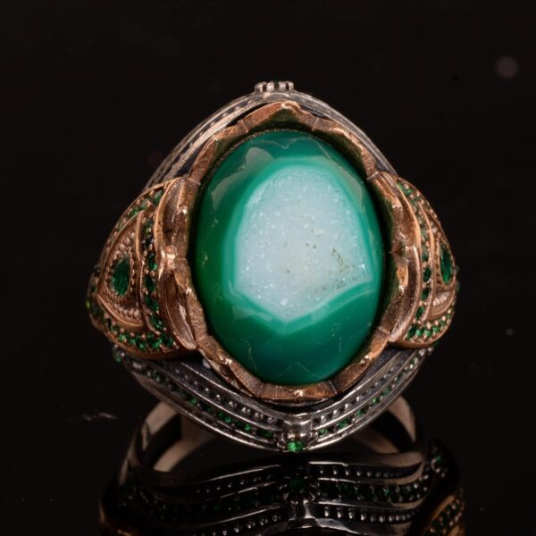 Gerçek Doğal Taş El Yapımı Yüzük – 925 Ayar Gümüş Şık Yüzük (Drusy Kuvars)