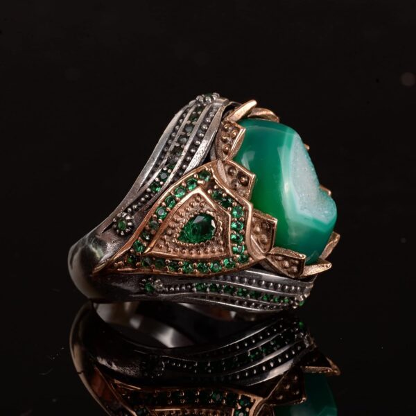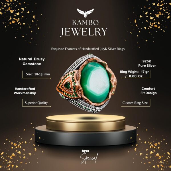 El Yapımı Mükemmellik: Her yüzük titizlikle el yapımıdır ve üstün zanaatkarlık ile detaylara gösterilen özenle dikkat çeker. Oluşumundaki özen ve beceri, onu gerçekten eşsiz ve özel bir takı parçası haline getirir.