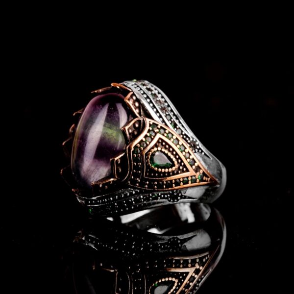 Gerçek Doğal Taş El Yapımı Yüzük – 925 Ayar Gümüş Şık Yüzük (Fluorite)