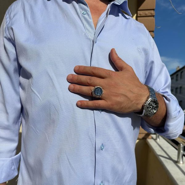 Bu muhteşem erkek yüzüğü, 925 ayar gümüşte ustalıkla yerleştirilmiş gerçek doğal kyanit taşı ile tasarlanmıştır. Zanaatkarlar tarafından el yapımı olarak üretilen bu yüzük, kalite ve şıklığı önemseyen erkekler için güç ve zarafetin bir ifadesidir.