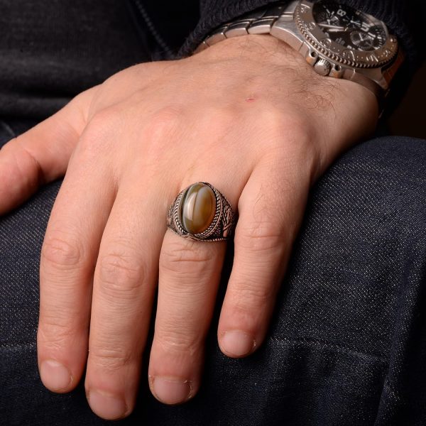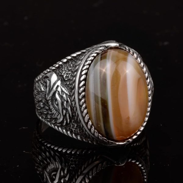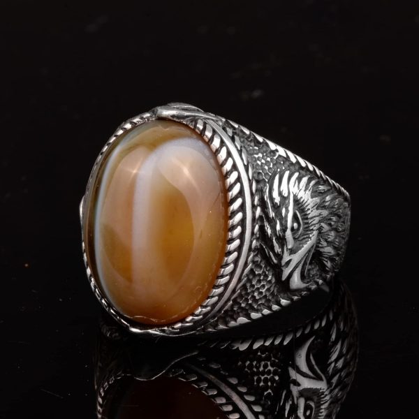 Şahane Agat Taşlı Erkek Yüzük, Kartal Tasarımı ile