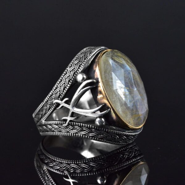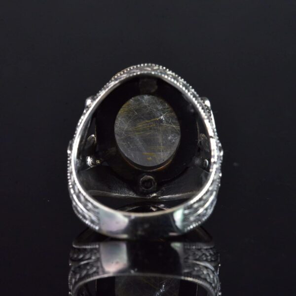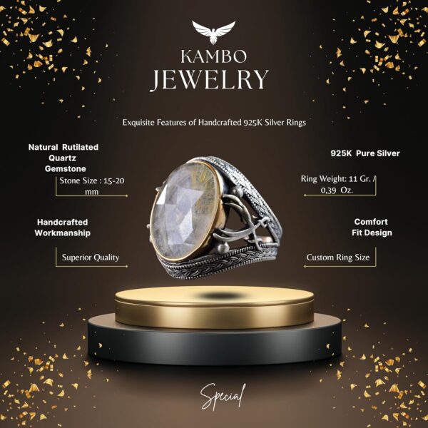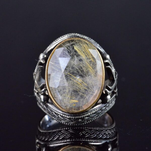Gerçek Rutilated Kuvars Doğal Taşlı El Yapımı 925 Ayar Gümüş Erkek Yüzük – Kılıç Tasarımı