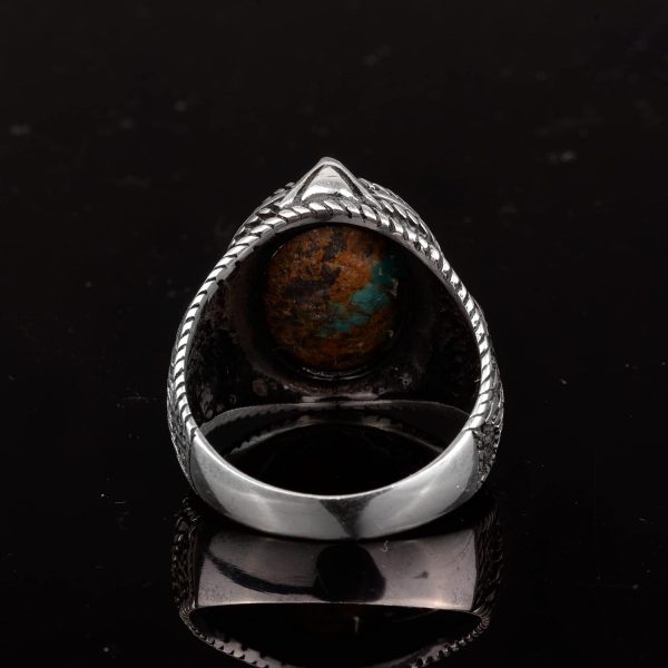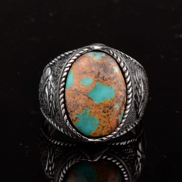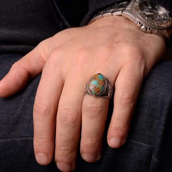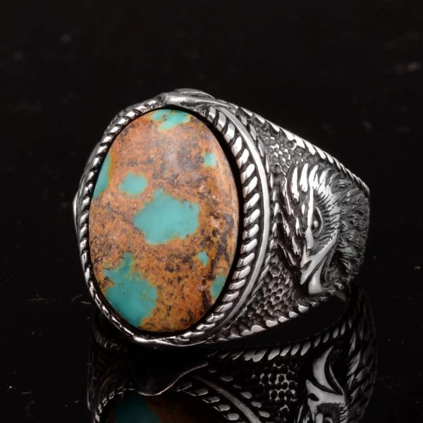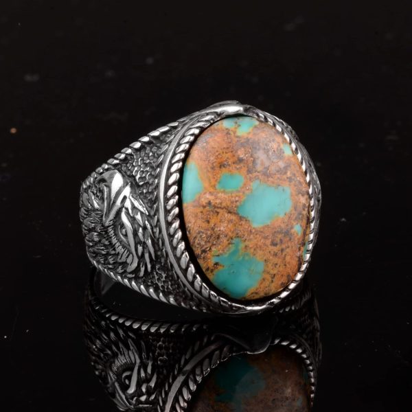 Şahane Turkuaz Doğal Taş Erkek Yüzüğü, Kartal Tasarımıyla