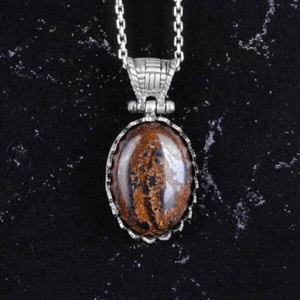 Gerçek Doğal Taş Kolye – 925 Ayar Gümüş Kolye (Bronzit)