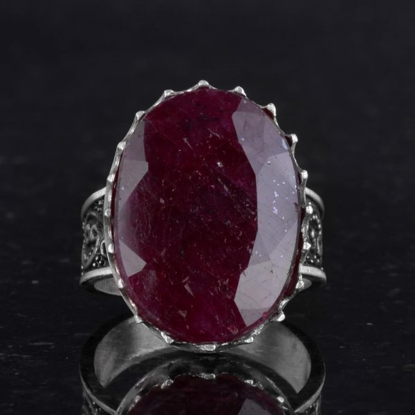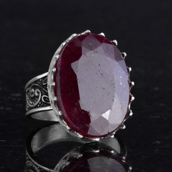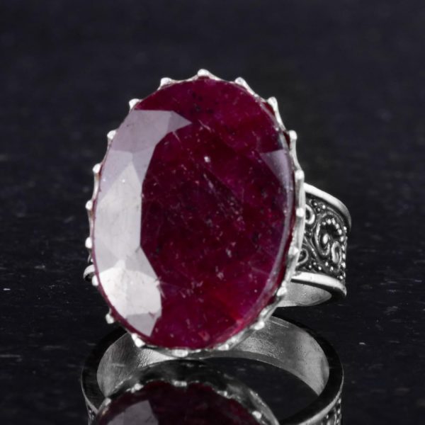 Gerçek Doğal Taş Yüzüğü – 925 Ayar Gümüş Büyük Yüzük – El Yapımı Yüzük (Yakut)