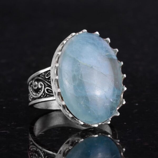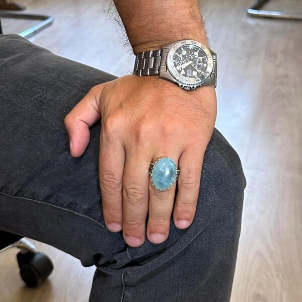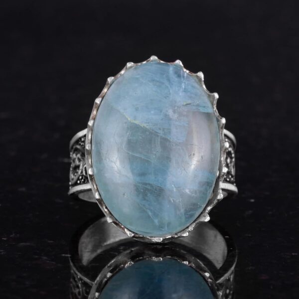 Gerçek Doğal Taş Yüzük – 925 Ayar Gümüş Büyük Yüzük – El Yapımı Yüzük (Aquamarine)