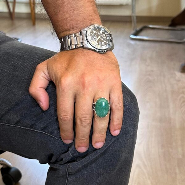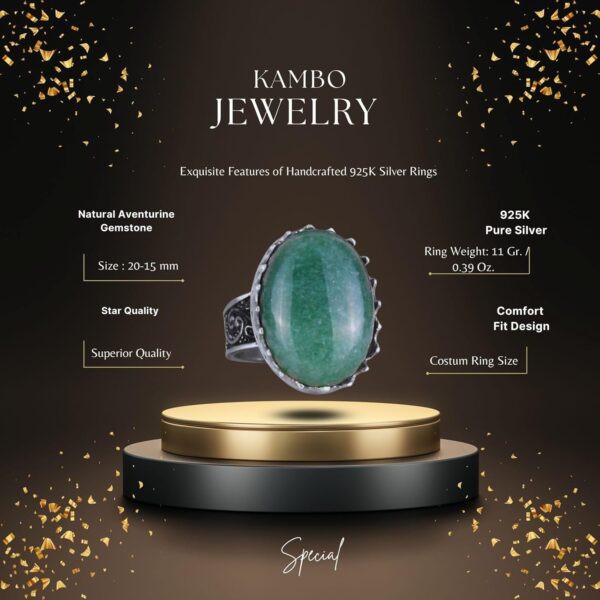 Gerçek Doğal Taş Yüzük – 925 Ayar Gümüş Büyük Yüzük – El Yapımı Yüzük (Aventurin)