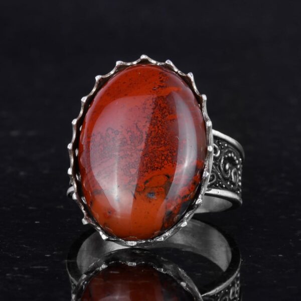 Gerçek Doğal Taş Yüzük – 925 Ayar Gümüş Büyük Yüzük – El Yapımı Yüzük (Kırmızı kan taşı)