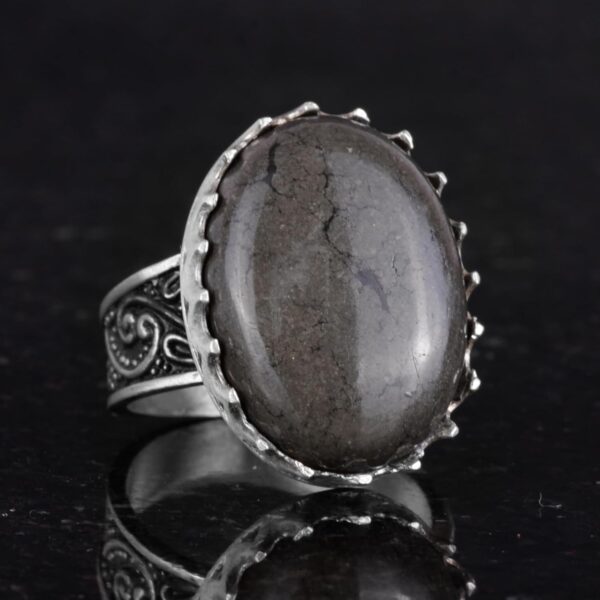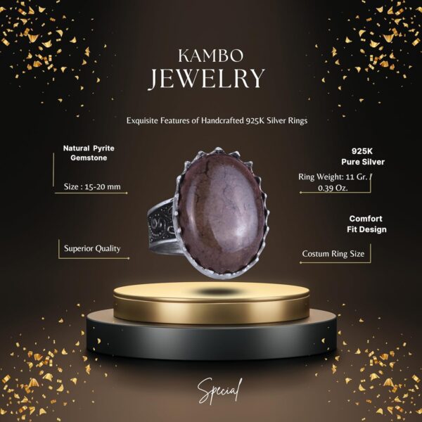 Gerçek Doğal Taş Yüzük – 925 Ayar Gümüş Büyük Yüzük – El Yapımı Yüzük (Pirit)
