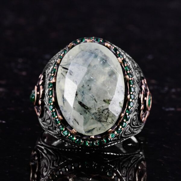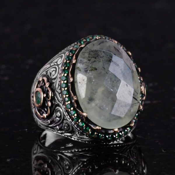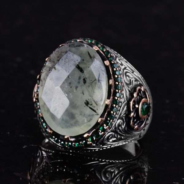 Gerçek Doğal Taş Yüzük – 925 Ayar Gümüş El Yapımı Yüzük (Prehnite)