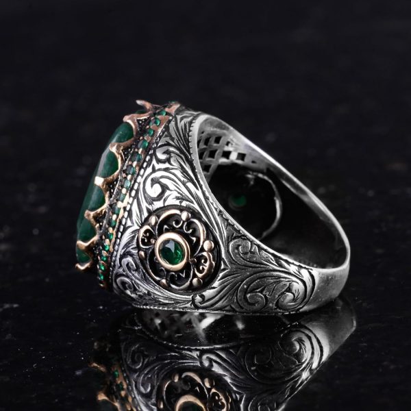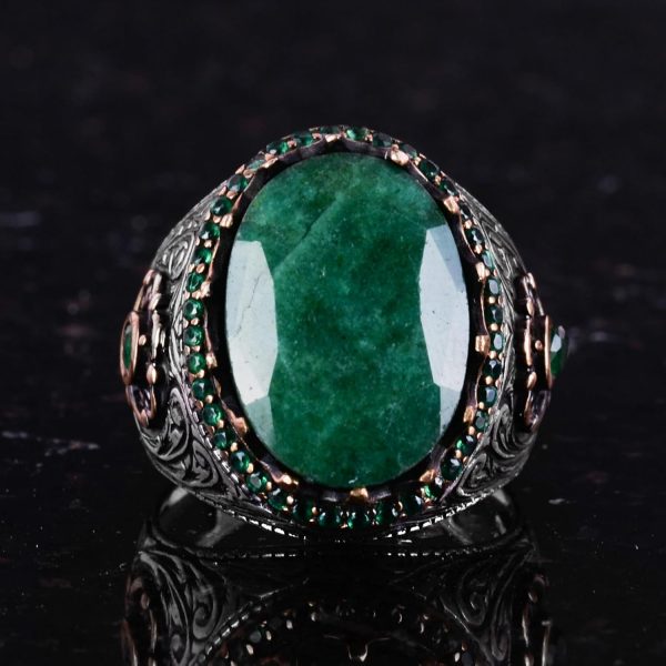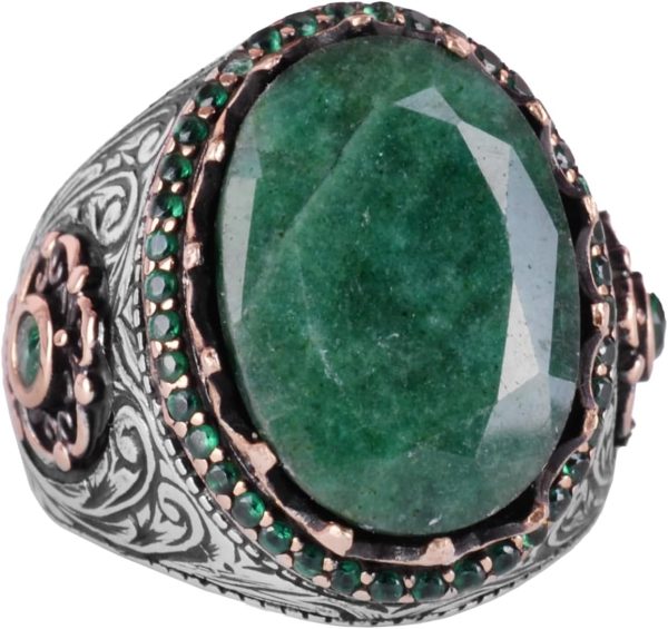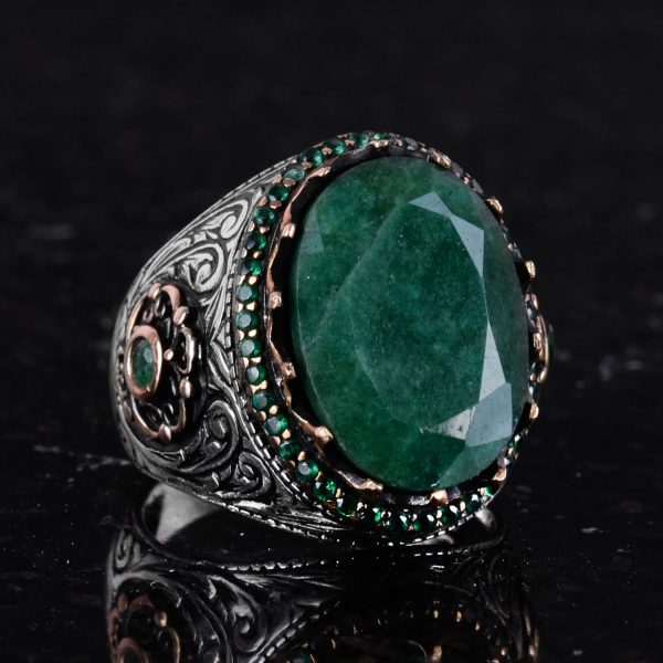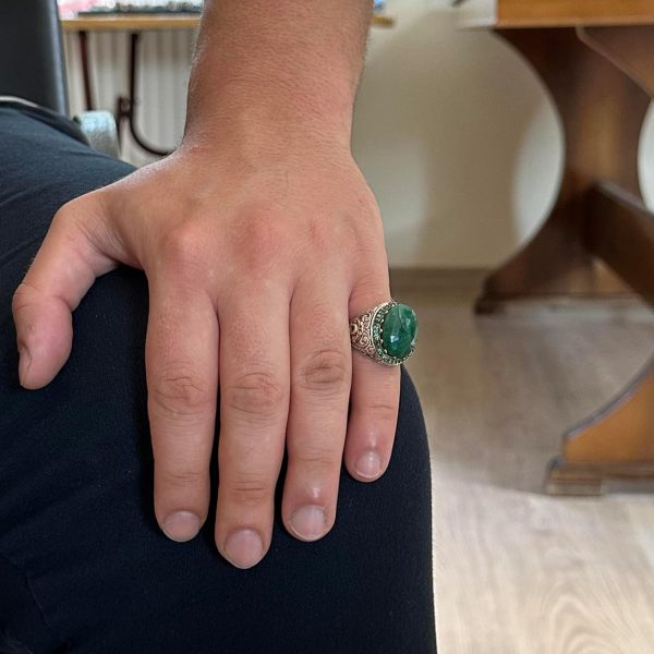 Gerçek Doğal Taş Yüzük – 925 Ayar Gümüş El Yapımı Yüzük (Zümrüt)