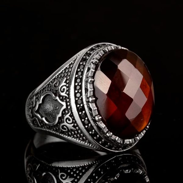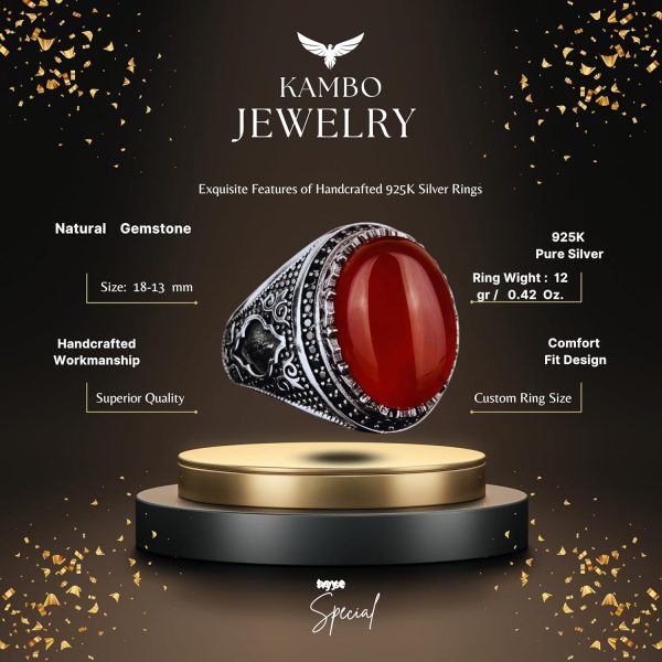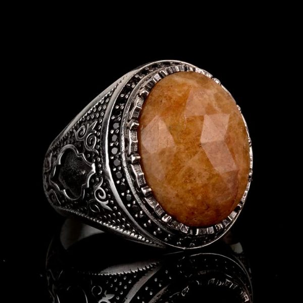 Gerçek Doğal Taş Yüzük, 925 Ayar Gümüş Erkek Yüzüğü, Erkekler İçin Doğum Taşı Yüzüğü