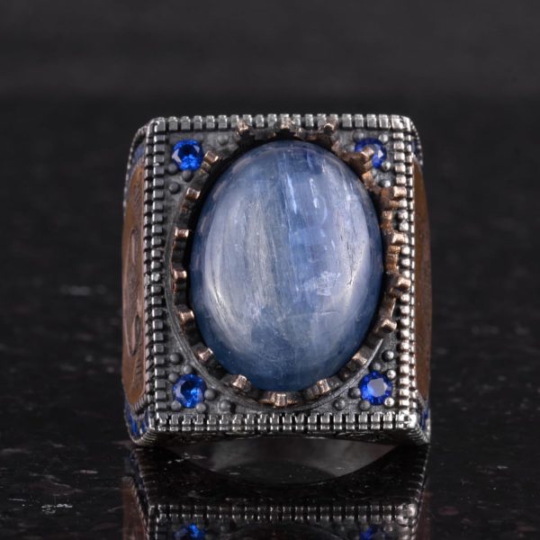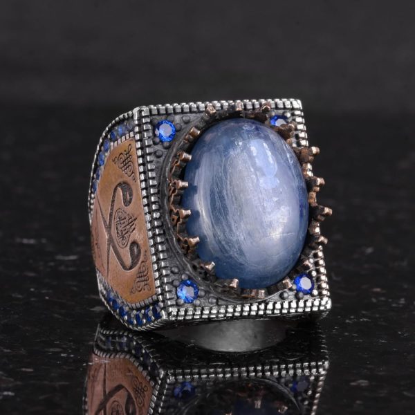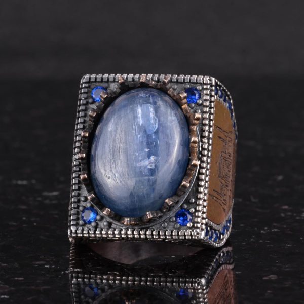 Eşsiz İslami Tasarım: KAMBO, 925 ayar gümüş üzerine işlenmiş gerçek doğal kyanit taşına sahip, muhteşem bir el yapımı İslami yüzük sunuyor. Bu yüzük, zarif ve anlamlı İslami takıları sevenler için mükemmel bir seçimdir.