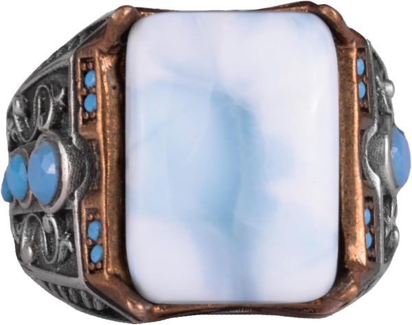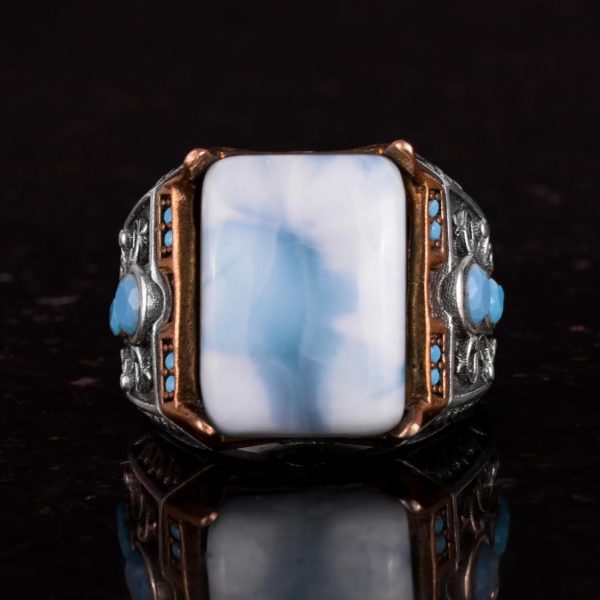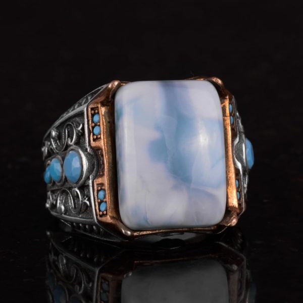 GERÇEK DOĞAL LARİMAR TAŞI YÜZÜK – 925 AYAR GÜMÜŞ ERKEK YÜZÜĞÜ
