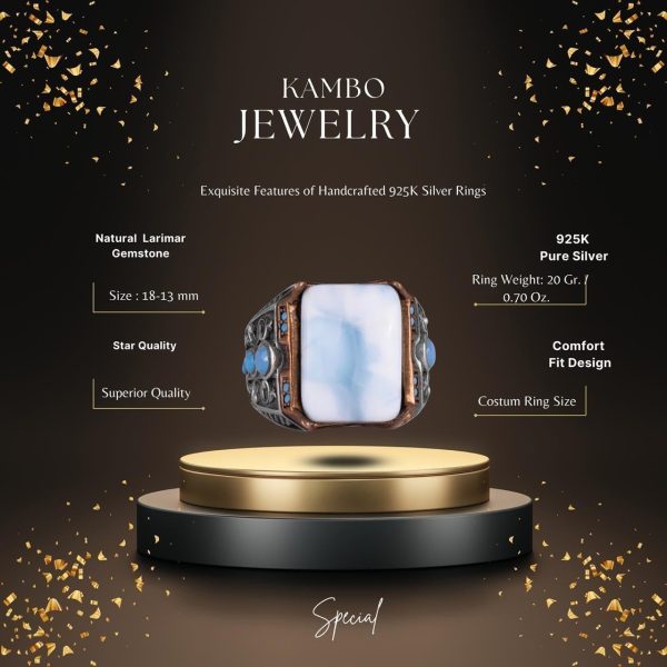 Bu güzel el yapımı erkek yüzüğü, sakin denizi andıran büyüleyici mavi rengiyle tanınan gerçek, doğal Larimar taşını içermektedir. Taş, doğal güzelliğini artırırken, günlük kullanım için dayanıklılık ve konfor sağlamak amacıyla titizlikle işlenmiş 925 ayar gümüş bir bant üzerine ustaca yerleştirilmiştir.