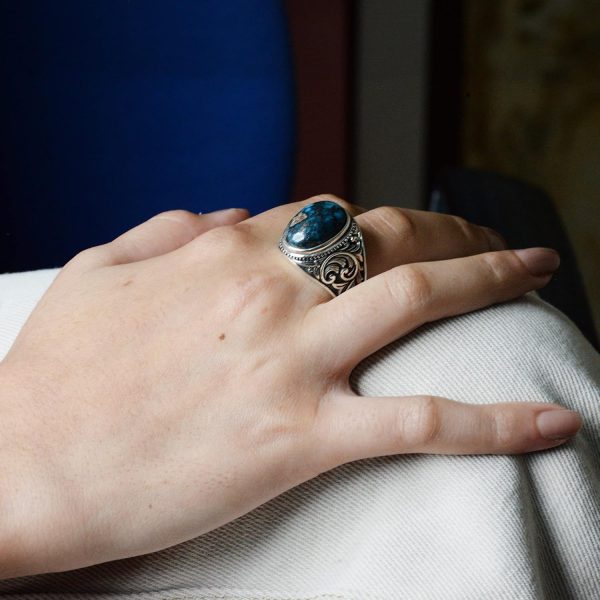 Gerçek Doğal Taş Yüzük, 925 Ayar Gümüş Yüzük (Turkuaz)