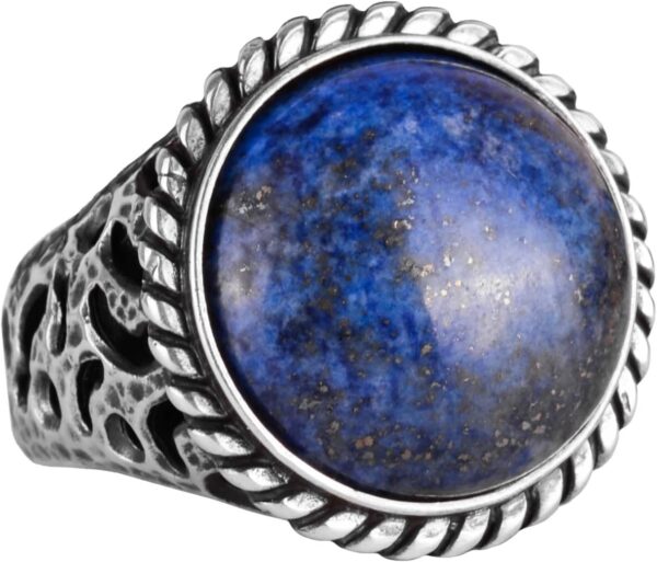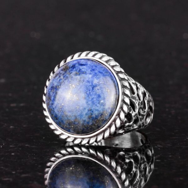 Gerçek Doğal Taş Yüzük – 925 Ayar Katı Gümüş Erkek Yüzüğü Lapis Lazuli ile