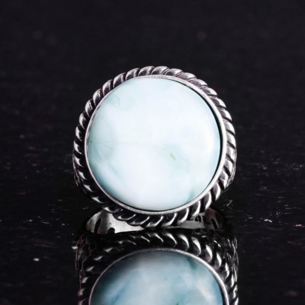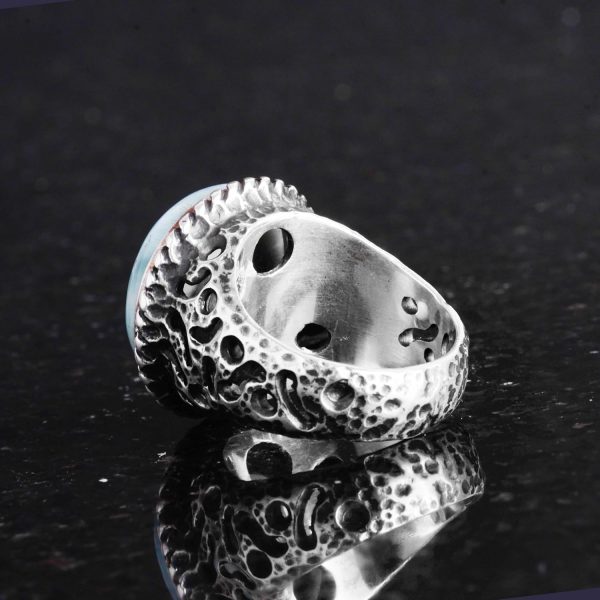 Gerçek Doğal Taş Yüzük – 925 Ayar Katı Gümüş Erkek Yüzüğü Larimar ile