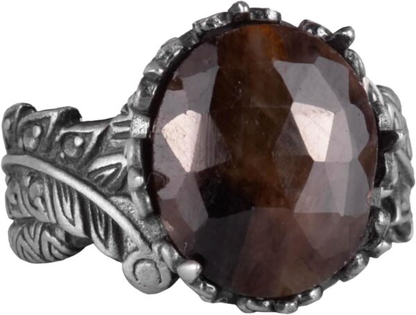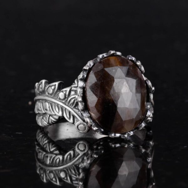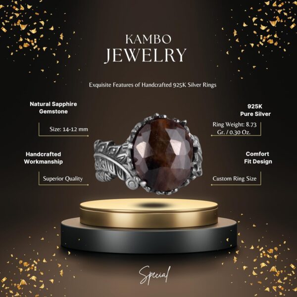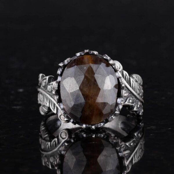 Gerçek Doğal Taş Yüzük – El Yapımı 925 Ayar Gümüş Takı (Kahverengi Safir)