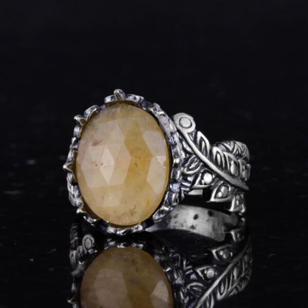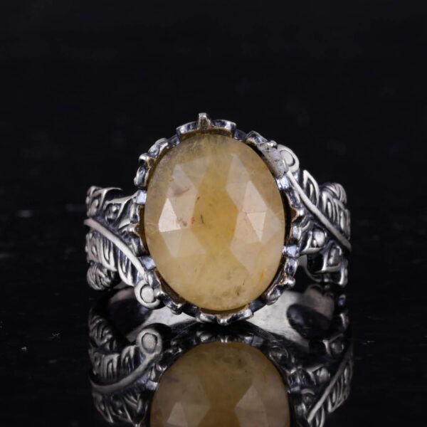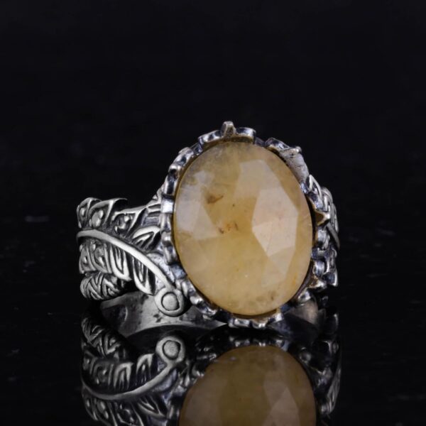 Gerçek Doğal Taş Yüzük – El Yapımı 925 Ayar Gümüş Takı (Sarı Safir)