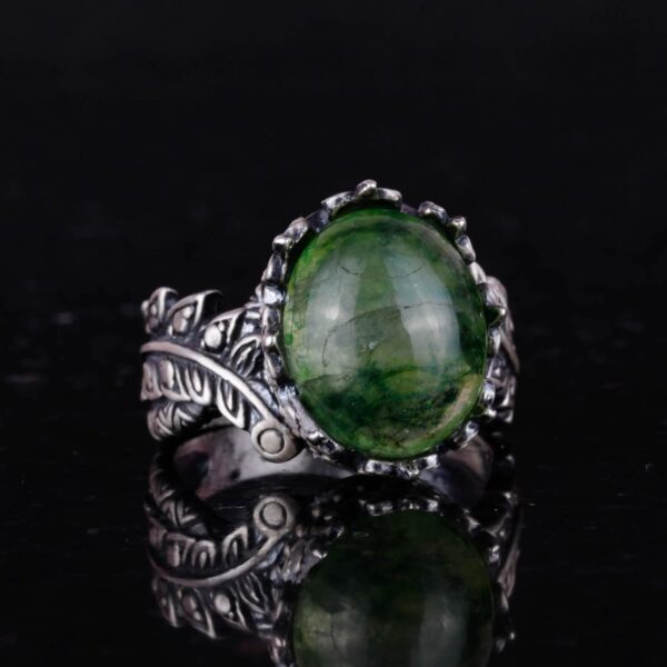Gerçek Doğal Taş Yüzük – El Yapımı 925 Ayar Gümüş Takı (Zümrüt)