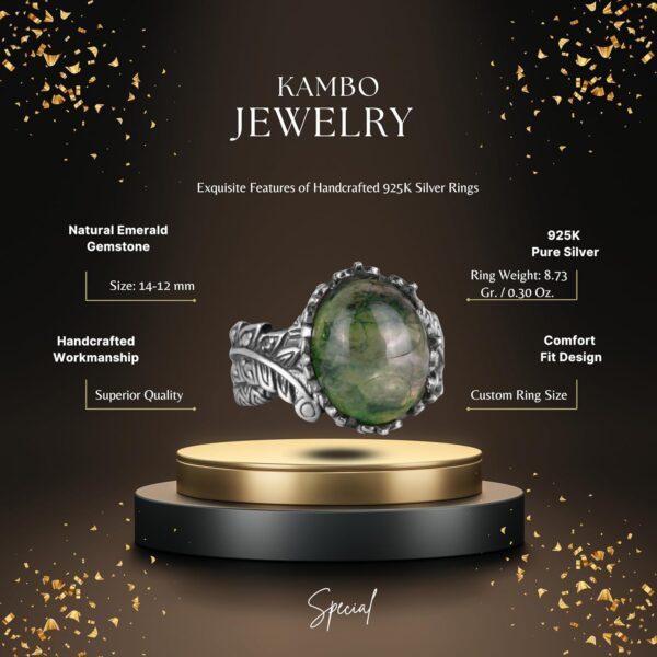 Erkekler için Gerçek Zümrüt Taşlı Yüzük – 925 Ayar Gümüş El Yapımı Takı