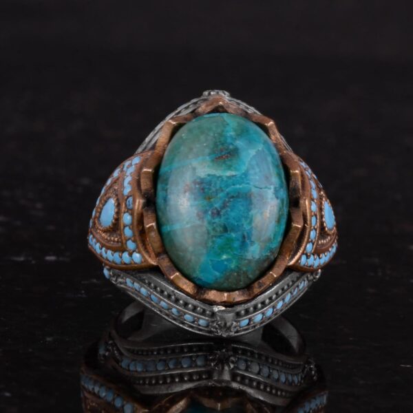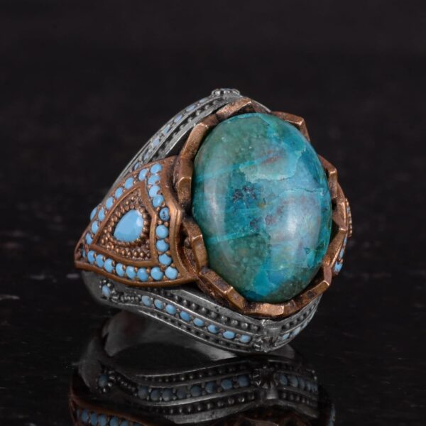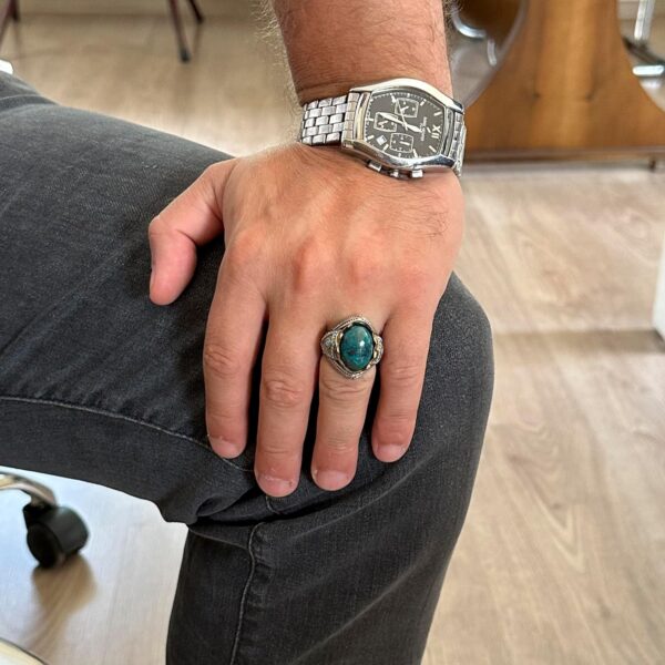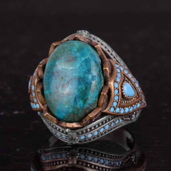 Erkekler için Doğal Azurit Taş Yüzük – 925 Ayar Gümüş El Yapımı Takı