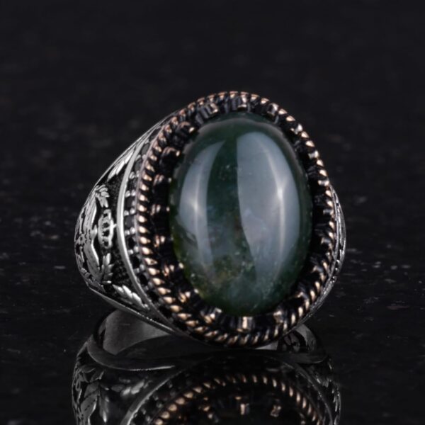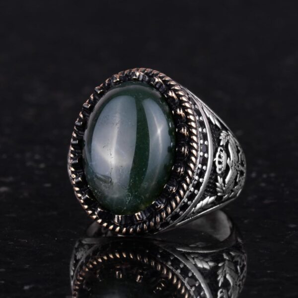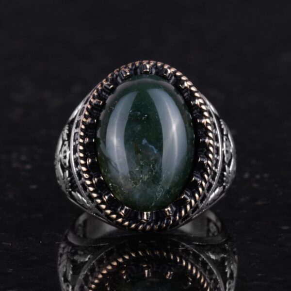 Gerçek Doğal Taş Yüzük – El Yapımı Kartal Yüzüğü – 925 Ayar Gümüş Moss Agate Yüzük