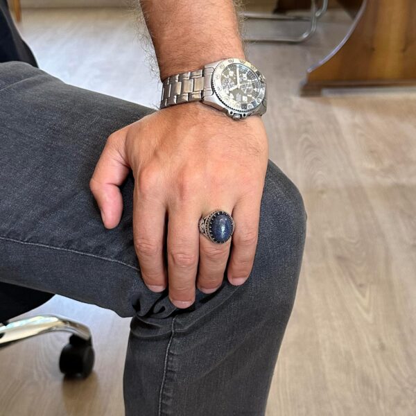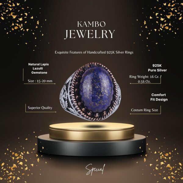 - Zamansız Tasarım: Derin mavi Lapis Lazuli taşı, karmaşık kartal tasarımıyla tamamlanarak benzersiz ve şık bir görünüm sunar.