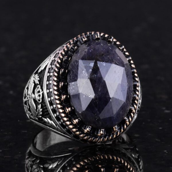 - Zamansız Tasarım: Derin Mavi Safir taşı, karmaşık kartal tasarımı ile tamamlanarak benzersiz ve şık bir görünüm sunar.