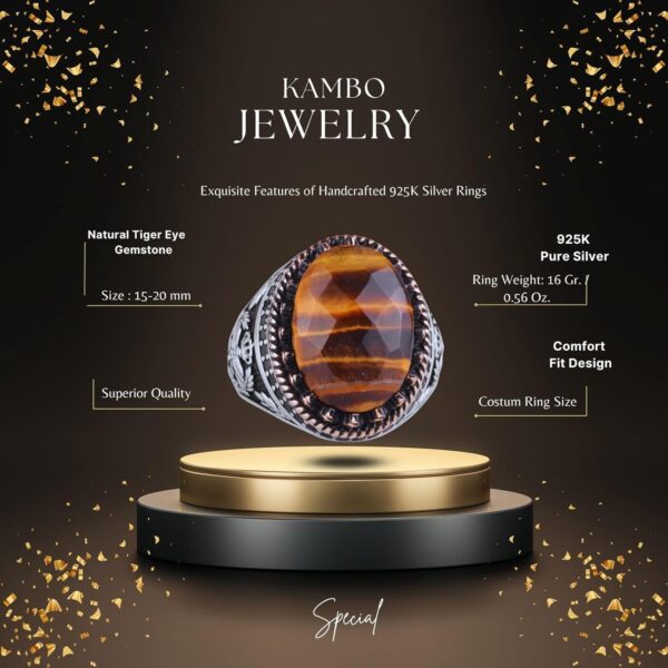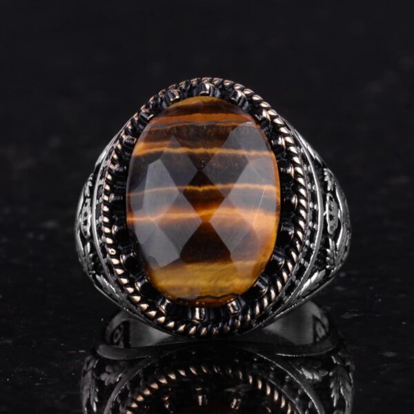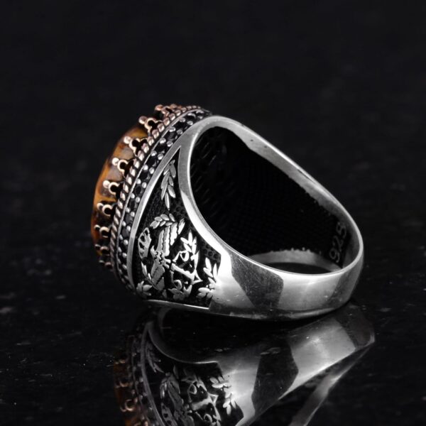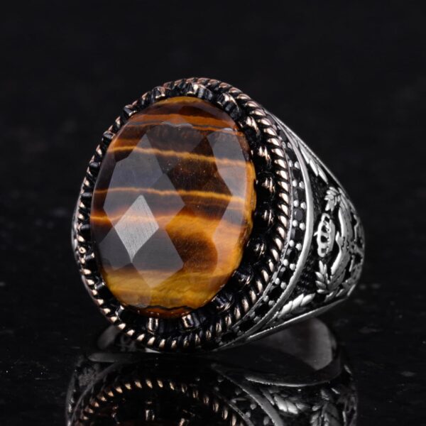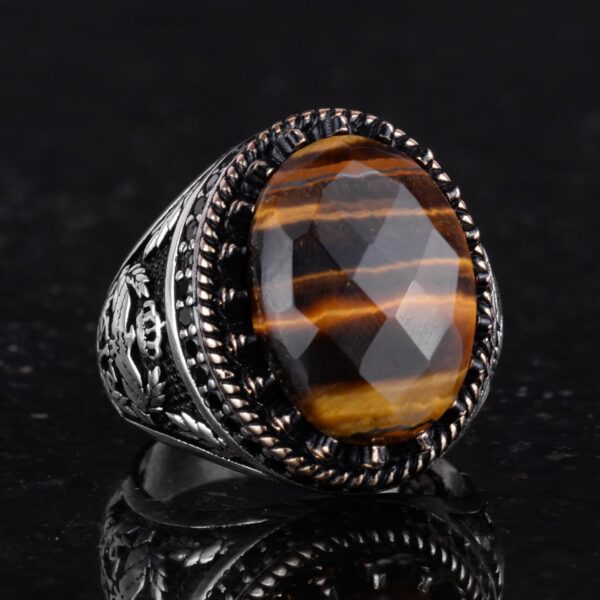 Gerçek Doğal Taş Yüzük – El Yapımı Kartal Yüzük – 925 Ayar Gümüş Yüzük (Kaplan Gözü)