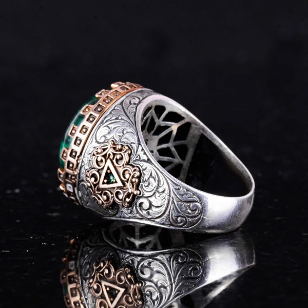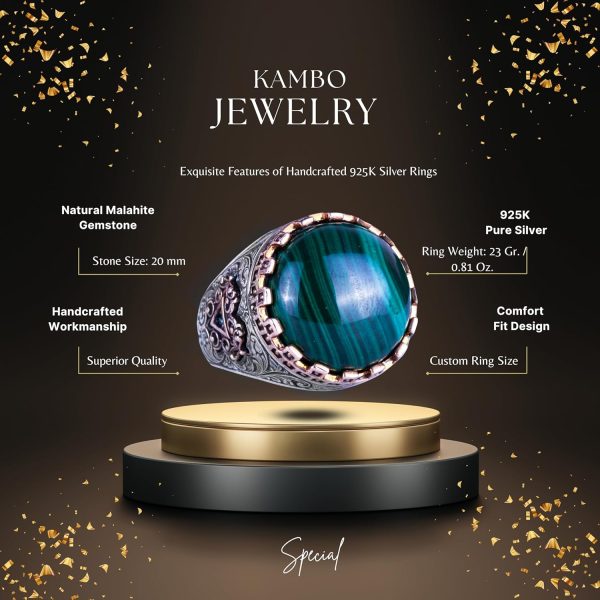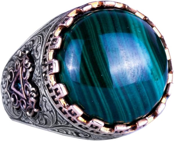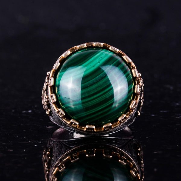 Gerçek Doğal Taş Yüzük – El Yapımı Kral Yüzüğü – 925 Ayar Gümüş Yüzük (Malakit)