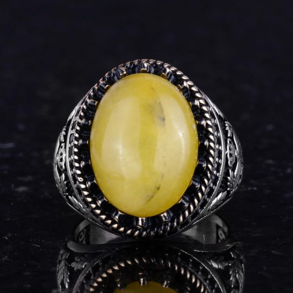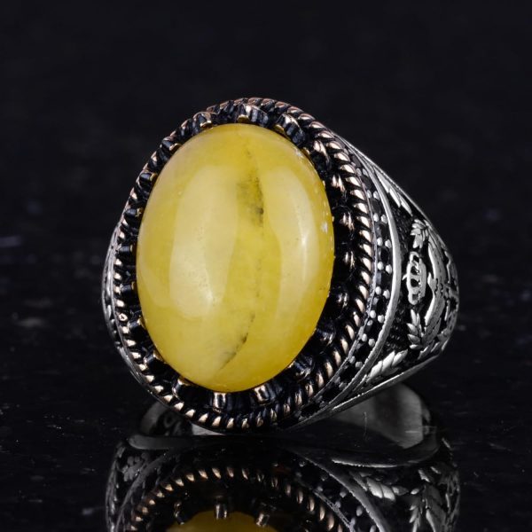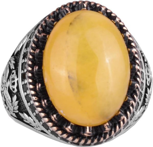 Gerçek Doğal Taş Yüzük – El Yapımı Şahin Yüzük – 925 Ayar Gümüş Yüzük (Amber)