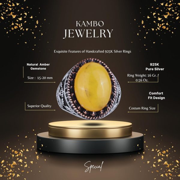 - Zamansız Tasarım: Amber taşının zengin altın rengi, karmaşık kartal tasarımıyla tamamlanarak benzersiz ve şık bir görünüm sunar.